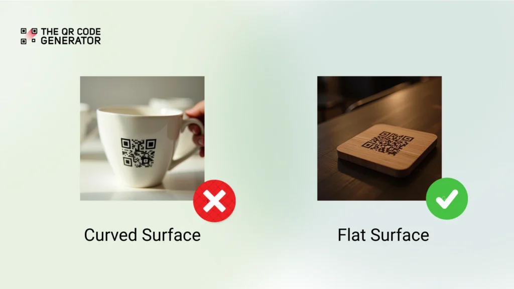 Pro Tip: Always print your QR Code on 2D surfaces![]() Even with the perfect SVG format, surface matters. If a QR Code is printed on curved, textured, or uneven materials, it can warp the design and make it unscannable. For the best results, use flat, high-contrast surfaces to ensure reliable scans. |