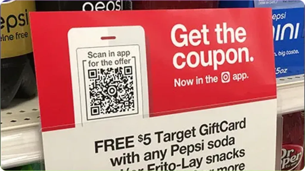 Os varejistas usam códigos QR para transformar compras em coleta de dados. A Target coloca códigos QR nas etiquetas das prateleiras, permitindo o checkout instantâneo pelo celular. Os clientes escaneiam, pagam e pulam o caixa, enquanto a loja captura o comportamento de compra.